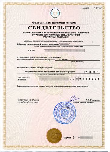 В свидетельстве указан номер ОГРН, а также ИНН и КПП российской организации. Напоминаем, что начиная с 29 апреля 2018 года документы высылаются только в электронном виде.
