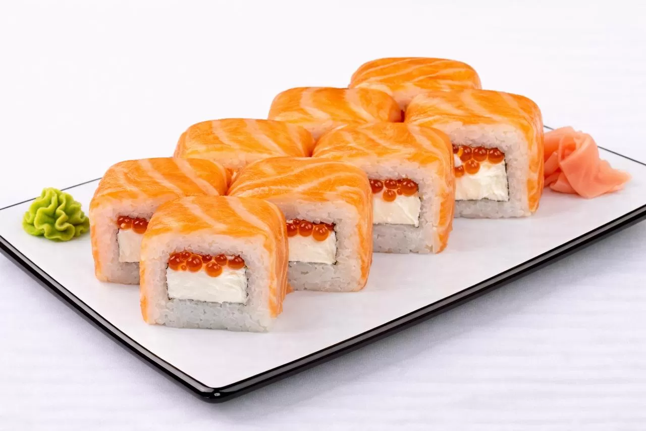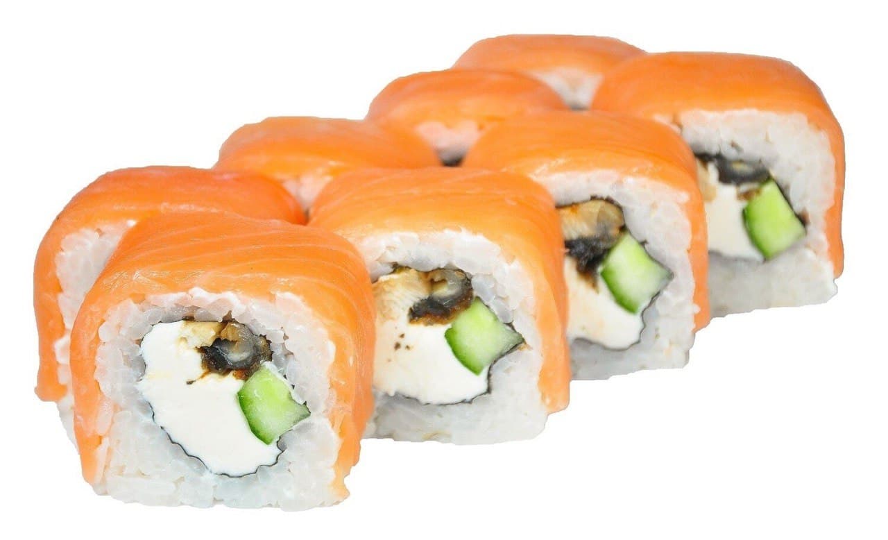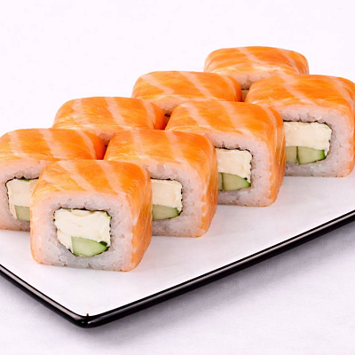 Роллы: Филадельфия, Филадельфия с угрем, Филадельфия с креветкой, Филадельфия с крабом. Суши: Лосось 2 шт
