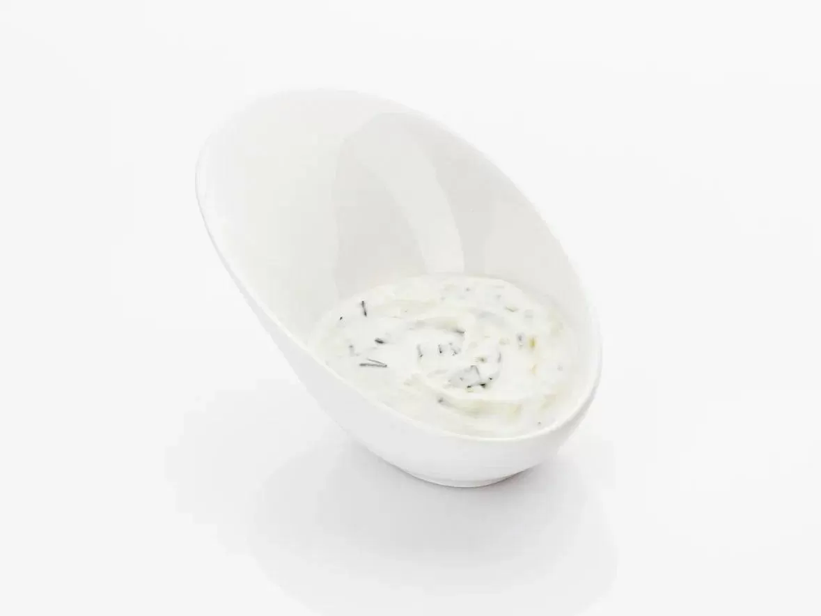 Сливочный соус, шампиньоны, сыр моцарелла, свежая зелень.